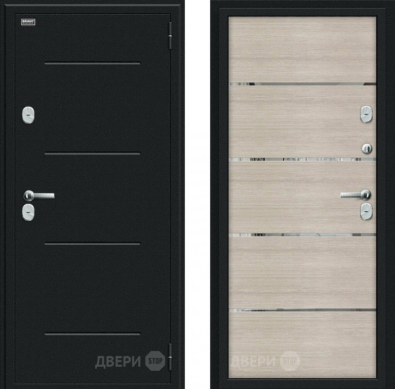 Входная металлическая Дверь Bravo Thermo Лайн Букле черное/Cappuccino Veralinga 860х2050 мм
