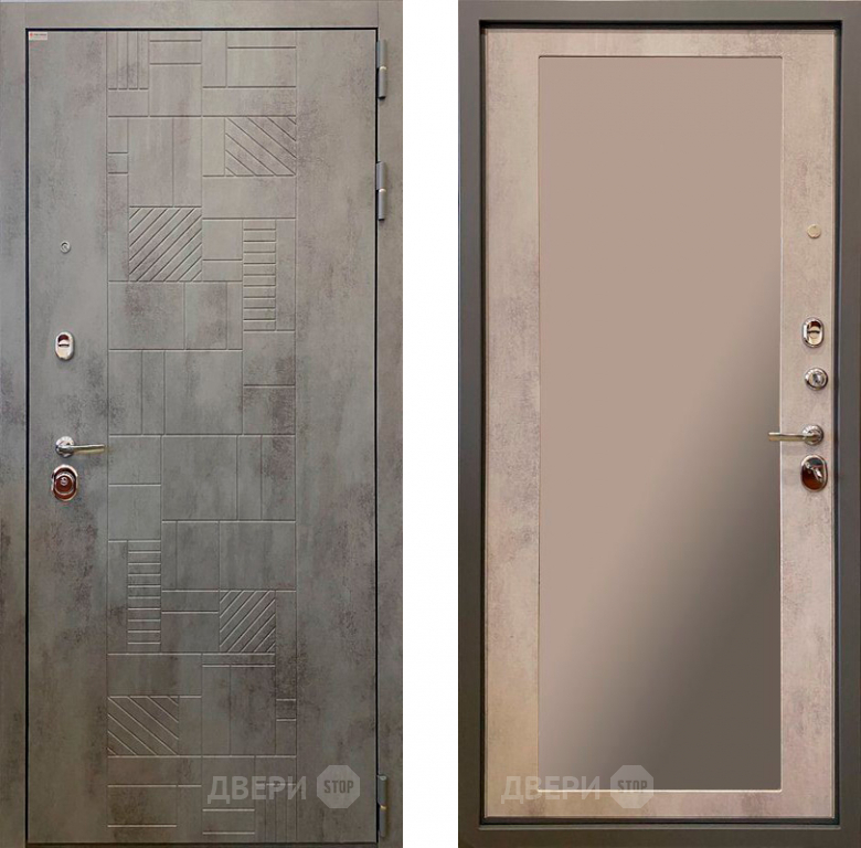 Входная металлическая Дверь Ратибор Тетрис 3К с зеркалом Бетон светлый 860х2050 мм