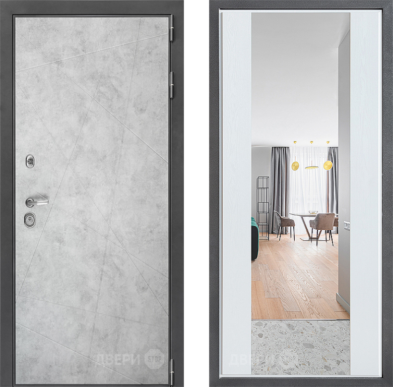 Входная Дверь Дверной континент ДК-3/743 ФЛЗ-1 Зеркало Белое дерево 860x2050 мм