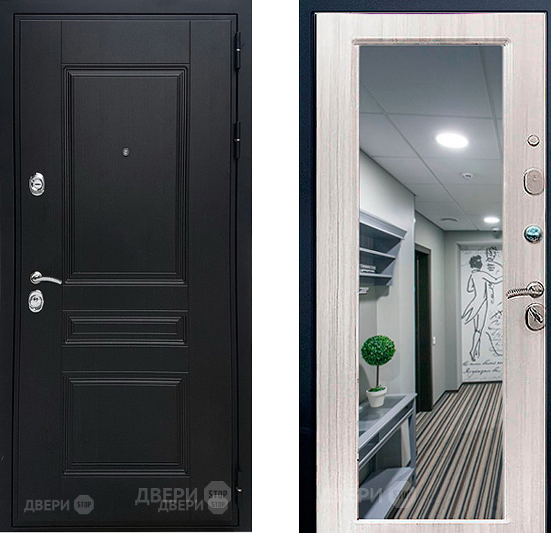 Входная Дверь Геркон (Gercon) Лондон панель МДФ с зеркалом Сандал белый 860x2050 мм