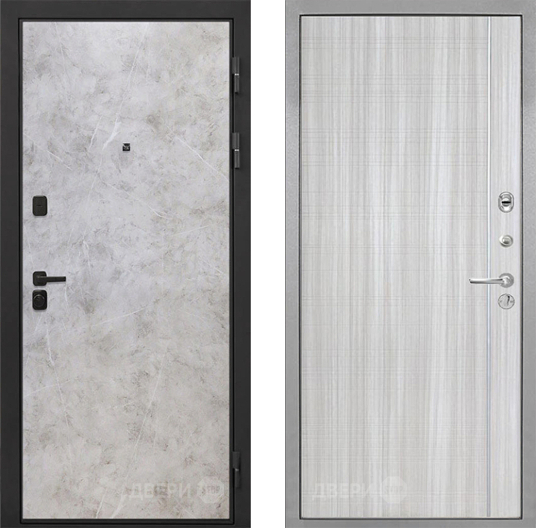 Входная Дверь Интекрон (INTECRON) Профит Black Мрамор Светлый В-07 с молдингом Сандал белый 860x2050 мм