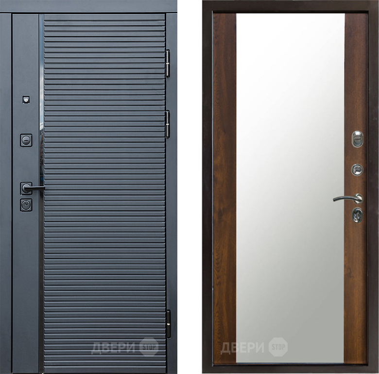 Входная Дверь Престиж Черная Линия Зеркало Дуб 860x2050 мм