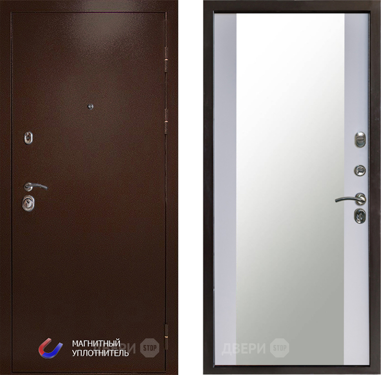 Входная Дверь Престиж Медь Зеркало Белый софт 960x2050 мм