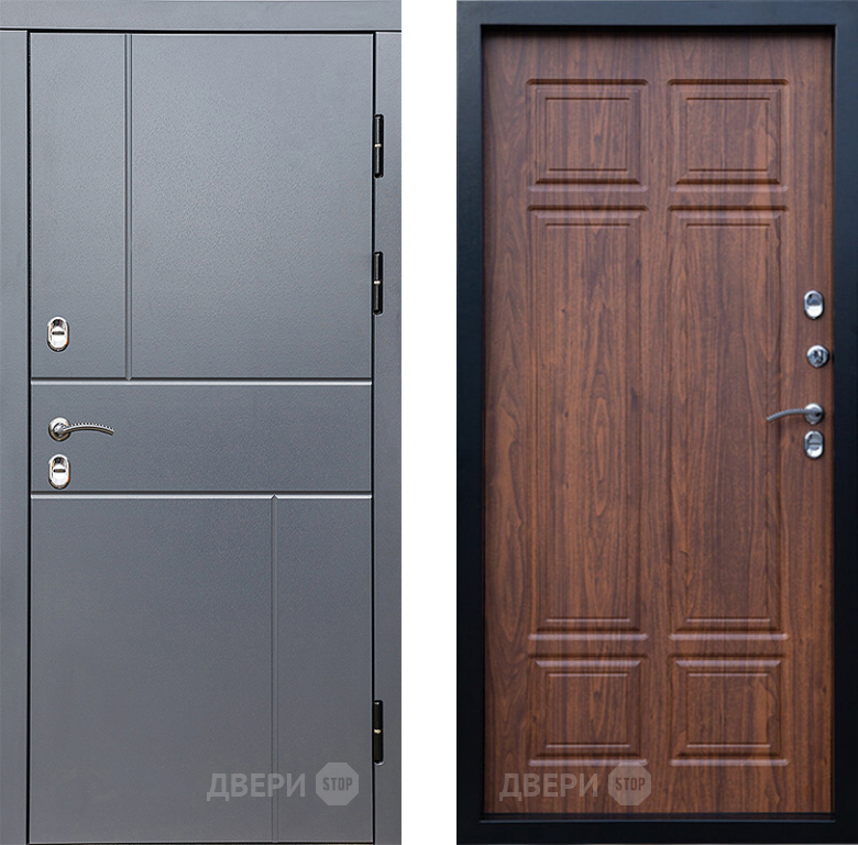 Входная Дверь Престиж TERMO с терморазрывом Горизонт Грэй Премиум Орех темный 860x2050 мм