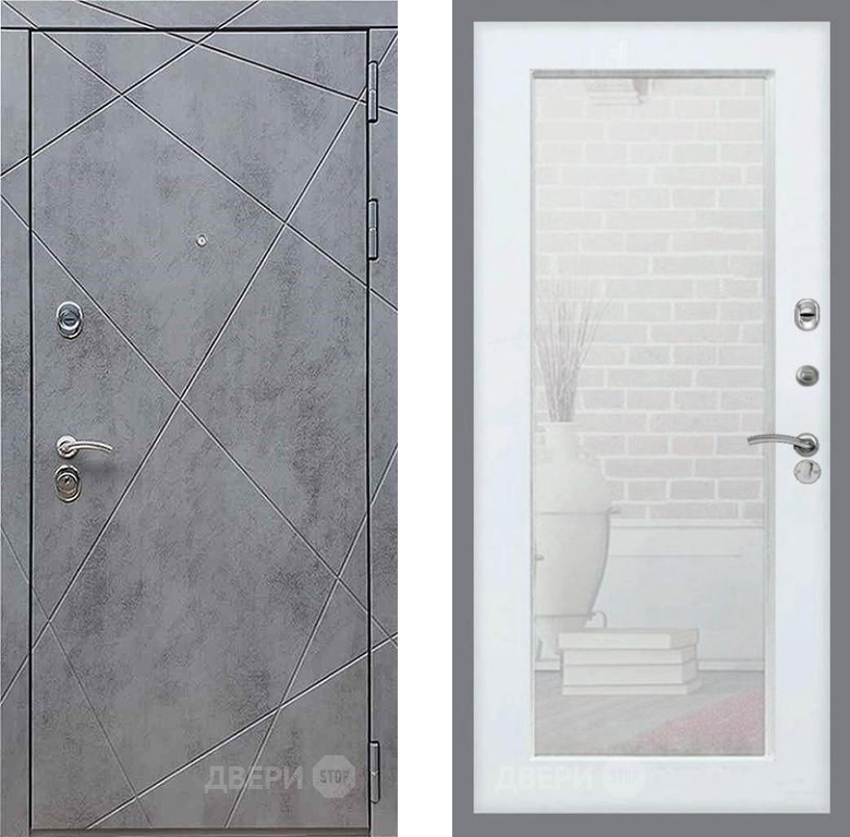 Входная Дверь Рекс (REX) 13 Бетон Темный Зеркало Пастораль Белый ясень 960x2050 мм