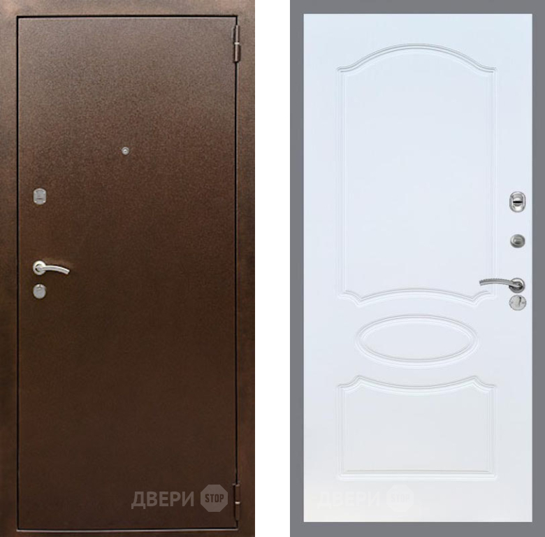 Входная Дверь Рекс (REX) 1А Медный Антик FL-128 Белый ясень 860x2050 мм