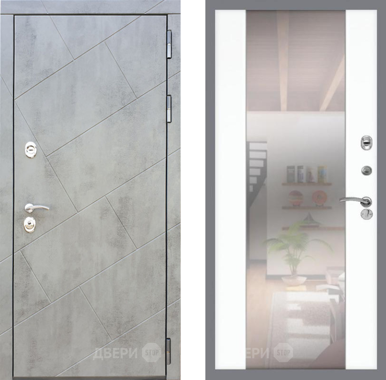 Входная Дверь Рекс (REX) 22 СБ-16 Зеркало Силк Сноу 860x2050 мм