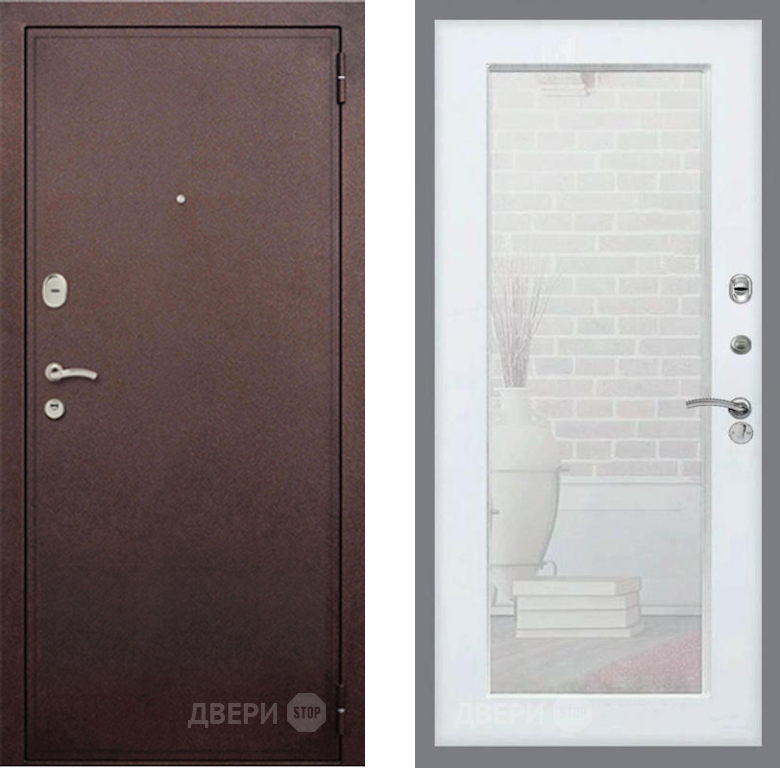 Входная Дверь Рекс (REX) 2 Медный Антик Зеркало Пастораль Силк Сноу 960x2050 мм