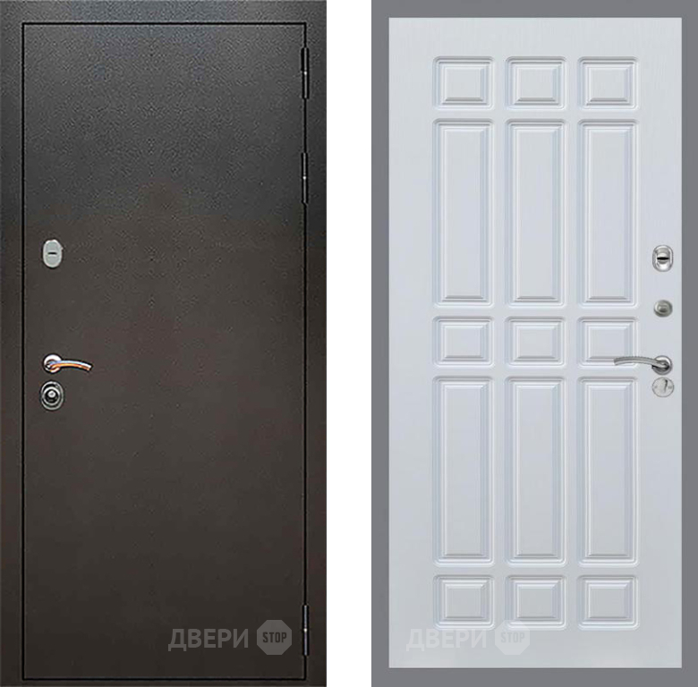 Входная Дверь Рекс (REX) 5 Серебро Антик FL-33 Белый ясень 860x2050 мм