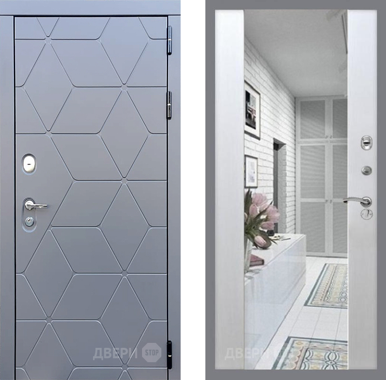 Входная Дверь Стоп КОСМО Зеркало СБ-16 Лиственница беж 860x2050 мм