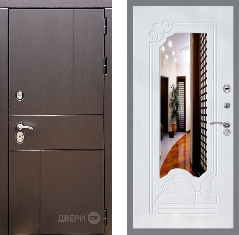 Входная Дверь Стоп УРБАН ЗкркалоФЛ-147 Ясень белый 960x2050 мм
