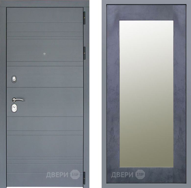 Входная Дверь Заводские двери Лира Софт графит Зеркало Модерн Бетон темный 860x2050 мм